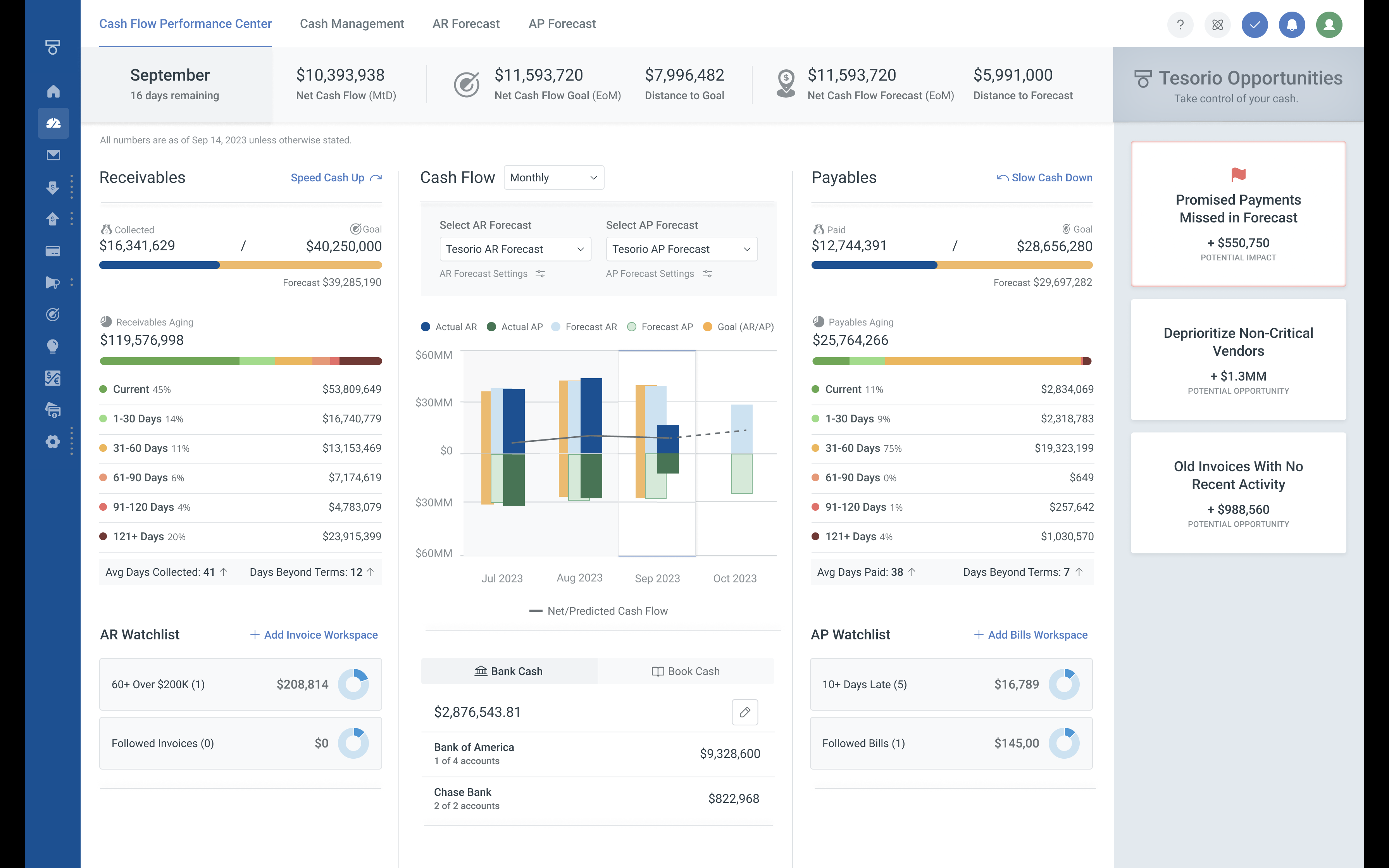 The Cash Flow Performance Center gives you a single view of your AR, AP, and bank cash.
