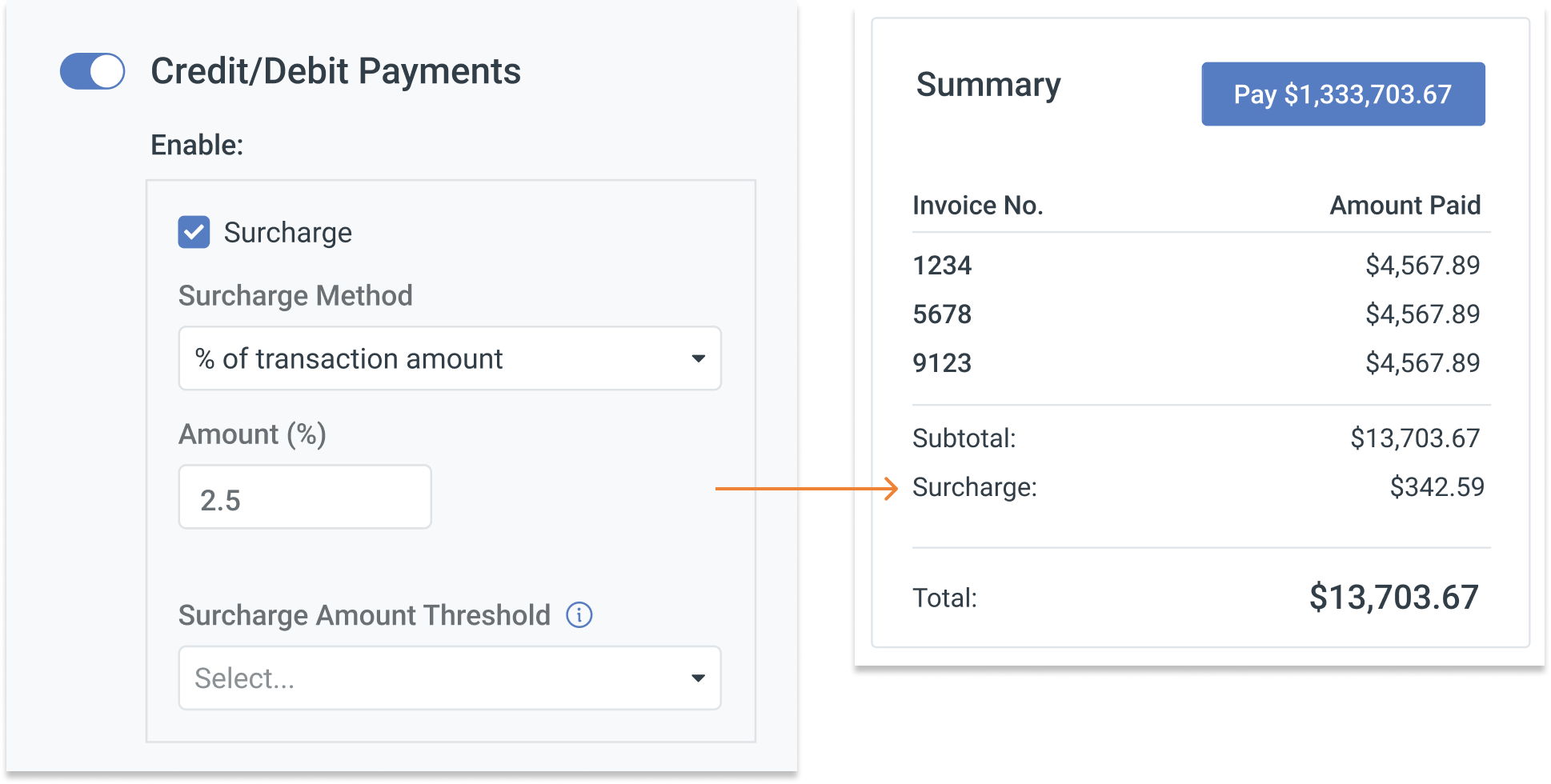 Our surcharging functionality provides a flexible range of options for setting surcharge amounts.