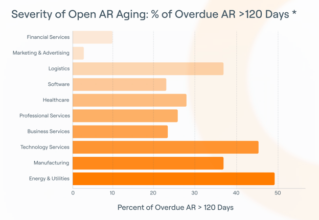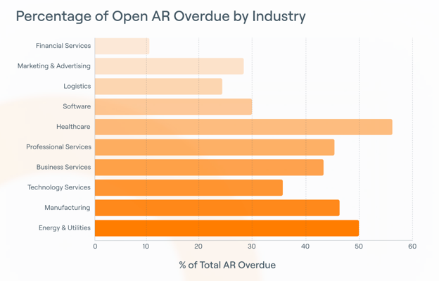 2. Percent Open AR Overdue by Industry: Overdue exposure is where inconsistent execution shows up first. Seeing how quickly overdue balances accumulate by industry makes segmentation feel necessary. It reinforces why cadence, ownership, and escalation rules need to exist before automation scales.