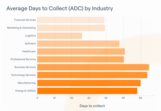 1. Average Days to Collect by Industry: This view helps set realistic targets by industry and business model. It shows whether your collection speed is lagging behind peers or simply reflects how customers in your segment pay. That context matters before you start changing cadence or escalation rules.