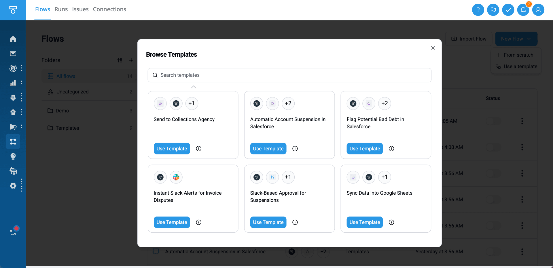 Tesorio doesn’t just connect systems—it lets your data drive your collections strategy. Workflows can pull signals from your ERP, CRM, and AI models to automate smarter, faster.