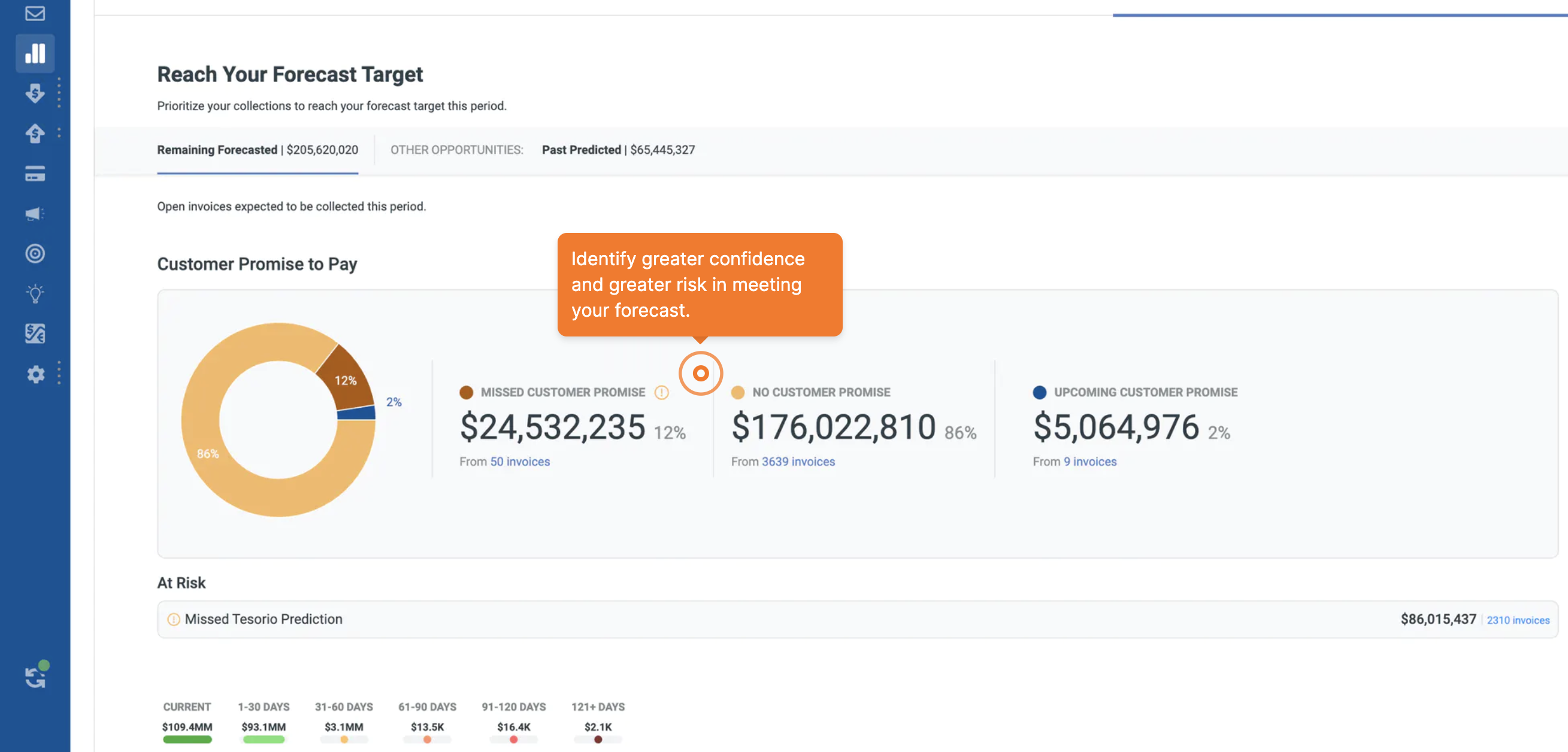 With Tesorio AR Forecast, your team can see their assigned collections, prioritize their work, understand expectations and track performance.