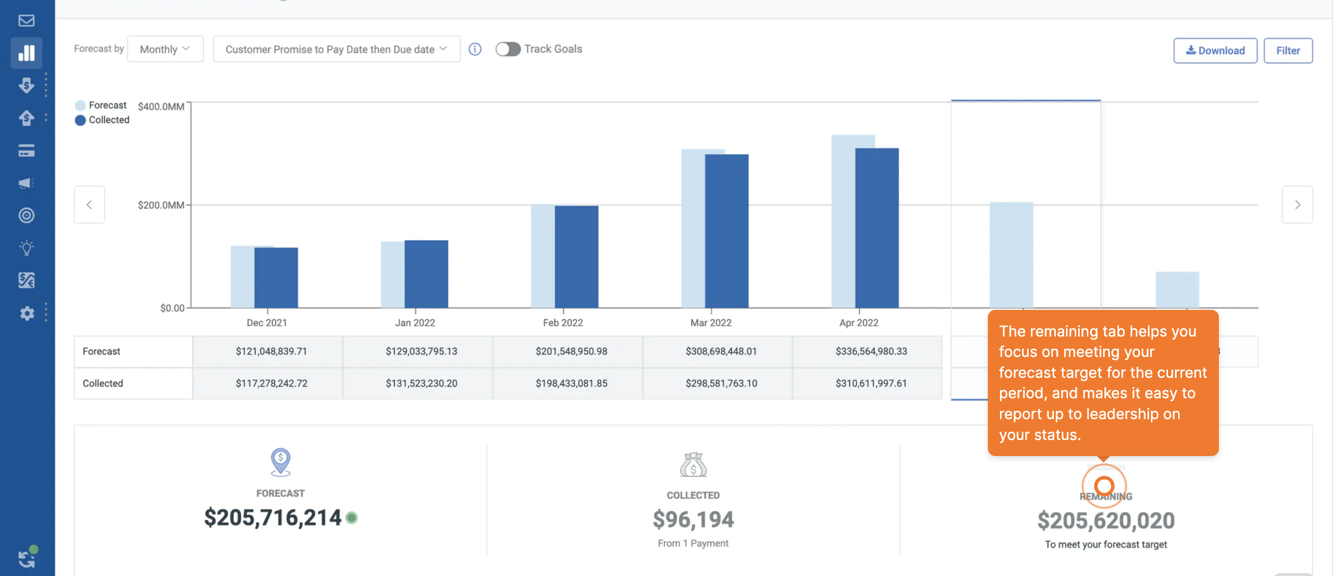Phoebe Caldwell adds, “As a manager, seeing forecasts and collections in real time helps you set and track goals for your team and helps them prioritize their work. Building forecasts automatically also removes the tedious manual reporting that's diverting them from the actual collections effort, which enables your team to spend more time actually collecting, communicating with customers so you can deliver more value to those customers.”